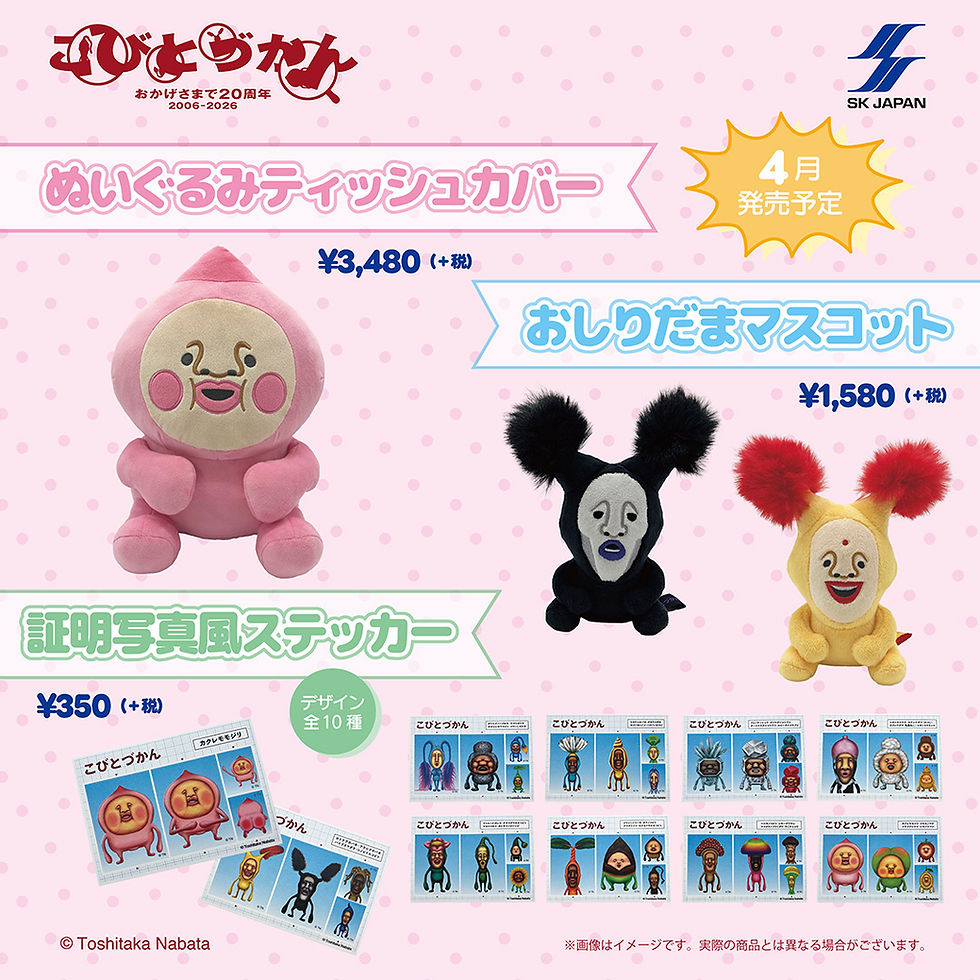 【新商品/プレゼント】「ぬいぐるみティッシュカバー」「おしりだまマスコット」「証明写真風ステッカー」4月下旬〜発売!by エスケイジャパン